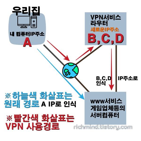 최근에 VPN 서비스가 굉장히 많아진 이유는 기업 내부망을 이용하기 위한 목적보다는 내 IP를 숨기고 인터넷을 한다거나 혹은 내 컴퓨터를 마치 해외에 있는 컴퓨터로 인식시켜야만 하는 서비스(넷플XX 등)를 이용한다던가 하는 용도로 많이 사용되기 때문입니다.