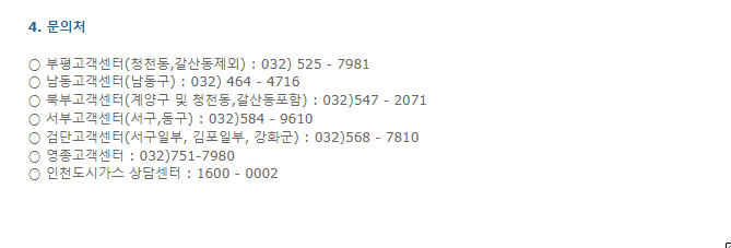 | 인천 도시가스 고객센터 이름 | 지역 | 전화번호 |