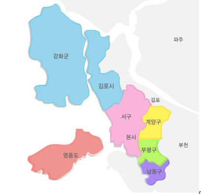 인천 도시가스에서 가스를 공급하고 서비스를 제공하는 지역은 아래 지도에서 볼 수 있습니다.