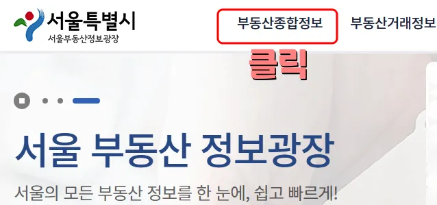 서울시 부동산정보광장으로 들어와서 상단의 부동산종합정로를 클릭합니다. 그 후 조회하고 싶은 건물의 도로명 주소나 지번주소를 입력하고 검색버튼을 누르면 종합정보 화면이 아래사진과 같이 나오게 됩니다. 여기서 건축물 정보 탭을 선택합니다.
