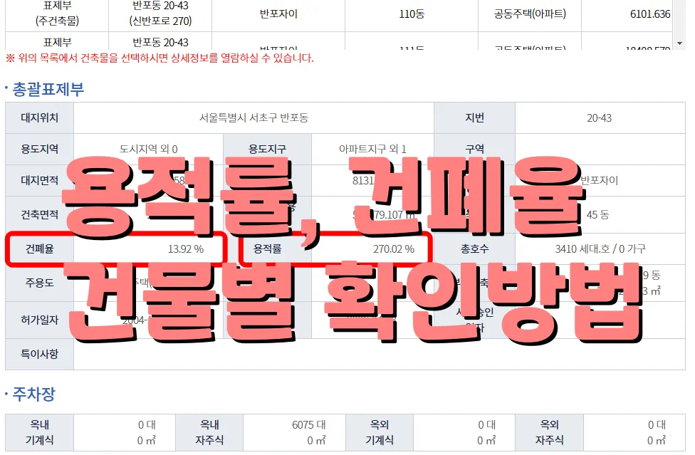 6. 건물 별 건폐율과 용적률 확인 하는 방법