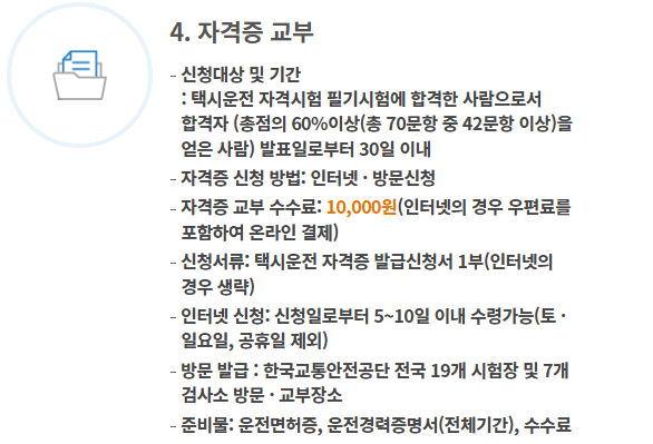 - 교육비: 45000원, 신분증, 택시운전자격증을 준비