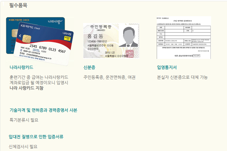 - 나라사랑카드 (발급받은 경우 지참).