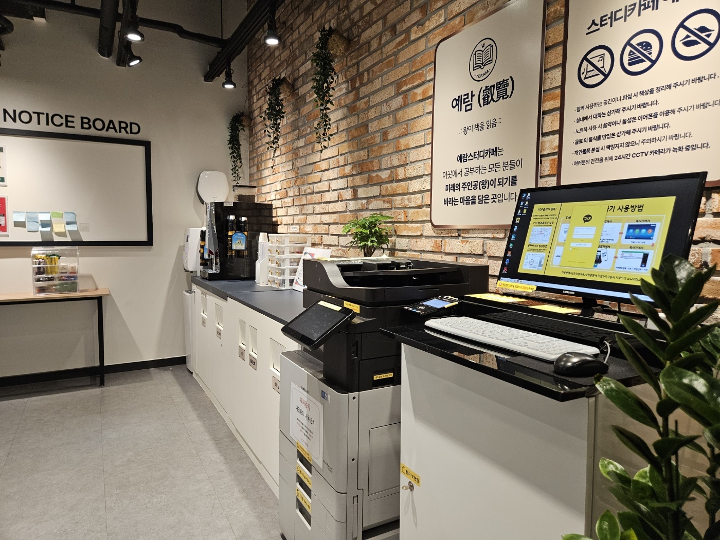 첫째, 원두커피 아메리카노, 핫초코, 음료수, 차, 사탕, 초콜릿 등 공부하다가 지칠 때 먹을 수 있는 간식이 다 무료입니다. 풍무동 예람스터디카페에서 복사와 프린터도 할 수 있고요.