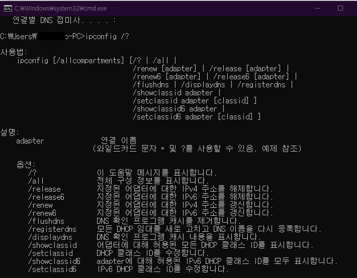 이 명령어는 DNS 캐시를 지우고 새로고침합니다.