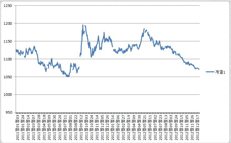 - 환율 동향: 2012년 원/달러 환율은 1,150원 내외로 변동하며 글로벌 불안 요인에 민감하게 반응했습니다. 하반기에는 미국 연방준비제도(Fed)의 QE3 정책으로 달러 약세가 심화되었습니다.